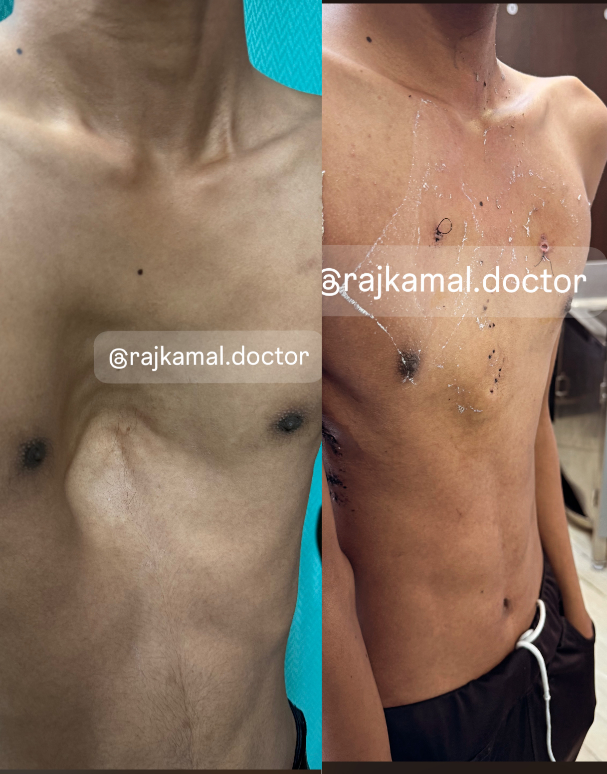 Pectus excavatum, commonly known as “sunken chest, ” is the most frequent chest wall deformity. Among its various forms, the Grand Canyon type represents one of the most severe and complex presentations. In this condition, the sternum and rib cage are deeply depressed, creating a striking “canyon-like” hollow in the chest. For patients and families, the deformity is not only a cosmetic concern but also a source of physical and psychological distress. ⸻ Understanding the Grand Canyon Type Deformity In the Grand Canyon type pectus excavatum: • The depression is very deep and extensive, often extending across the midline. • The chest wall appears elongated and asymmetric, producing a visible canyon-shaped hollow. • It frequently affects adolescents and young adults, when the chest wall becomes less flexible and the deformity more pronounced. ⸻ Complications of Severe Pectus Excavatum Severe deformities can lead to functional and psychosocial issues, including: 🔹 Cardiac Compression – The sternum may push against the heart, reducing right ventricular filling and affecting cardiac output. 🔹 Respiratory Restriction – Limited lung expansion can cause exertional breathlessness and poor exercise tolerance. 🔹 Postural Changes – Patients often adopt a stooped posture, with shoulder drooping and chest narrowing. 🔹 Psychological Impact – Social anxiety, body image concerns, and reduced self-esteem are significant in teenagers and young adults. In advanced types such as the Grand Canyon deformity, these complications are often more severe and disabling. ⸻ Minimally Invasive Surgical Correction The patient in the images (19 years old) presented with severe Grand Canyon–type pectus excavatum. After detailed CT evaluation, he underwent a Minimally Invasive Repair of Pectus Excavatum (MIRPE). The technique involves: 1. Elevating the chest wall using a crane system for safety. 2. Inserting a custom-shaped pectus bar behind the sternum. 3. Securing the bar with stabilizers to maintain correction. Results: Before and After • Before surgery: A deep, canyon-shaped chest wall depression was visible, with significant asymmetry. • After surgery: Immediate correction was achieved with restoration of a normal, flat chest contour. The patient’s confidence and posture improved dramatically. The minimally invasive technique ensures smaller scars, quicker recovery, and excellent cosmetic outcomes, even in very severe deformities. ⸻ Takeaway The Grand Canyon type of pectus excavatum is one of the most challenging forms of chest wall deformity. Left untreated, it can cause serious health and psychosocial problems. However, with modern minimally invasive techniques, even the most severe deformities can be corrected effectively, offering patients both functional and emotional relief. In Chennai, I specialize in advanced pectus correction surgery, providing consistent results for patients across all age groups. 👉 To know more or book a consultation: Dr. Rajkamal Vishnu | Pectus Surgery Specialist 🌐 www.pectussurgeon.in Best Pectus Excavatum Surgery in Chennai Dr. Rajkamal Vishnu Severe Chest Deformity Correction India SIMS Hospital Chennai Minimally Invasive Pectus Surgery in Tamil Nadu Dr. Rajkamal Vishnu best doctor for pectus excavatum in Chennai • where to get pectus surgery in India • affordable pectus excavatum surgery Chennai • pectus carinatum brace treatment India • experienced thoracic surgeon for chest deformity Chennai • latest techniques for pectus surgery India • minimally invasive chest deformity correction Chennai • pectus surgery specialist Dr. Rajkamal Vishnu